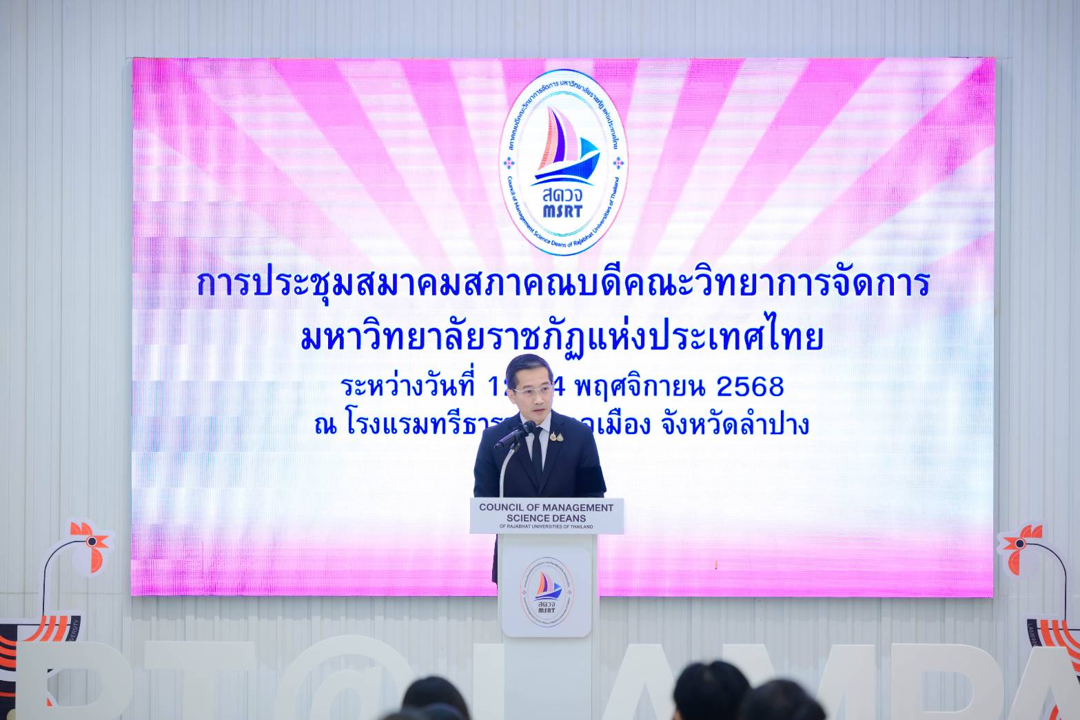 LPRU News : เมื่อวันที่ 12 พฤศจิกายน 2568 รศ.ดร.ปริเยศ สิทธิสรวง รองอธิการบดีฝ่ายบริหาร มหาวิทยาลัยราชภัฏลำปาง กล่าวต้อนรับ พิธีเปิดโครงการประชุมสมาคมสภาคณบดีคณะวิทยาการจัดการ มหาวิทยาลัยราชภัฏแห่งประเทศไทย ณ โรงแรมทรีธารา อำเภอเมือง จังหวัดลำปาง โดยได้รับเกียรติจาก นายกฤษณะ พินิจ รองผู้ว่าราชการจังหวัดลำปาง เป็นประธานพิธีเปิด ผศ.ดร.พนา ดุลยพัชร์ นายกสมาคมสภาคณบดี คณะวิทยาการจัดการ มหาวิทยาลัยราชภัฏแห่งประเทศไทย กล่าวรายงานวัตถุประสงค์การจัดงาน