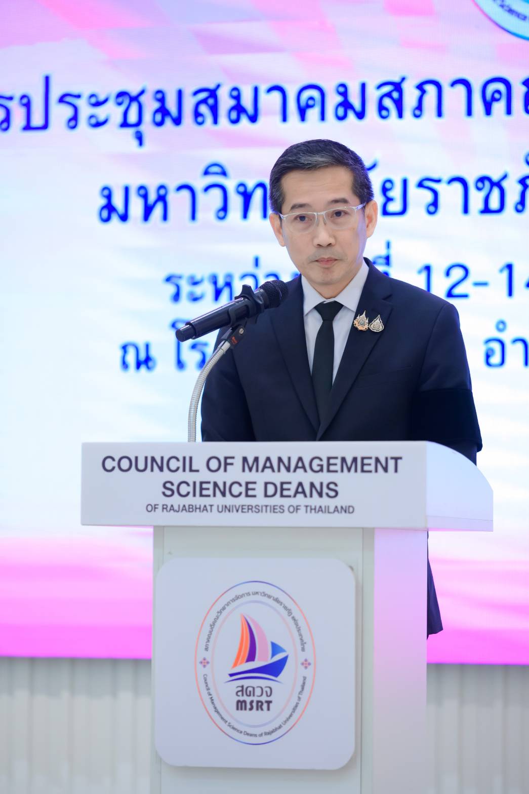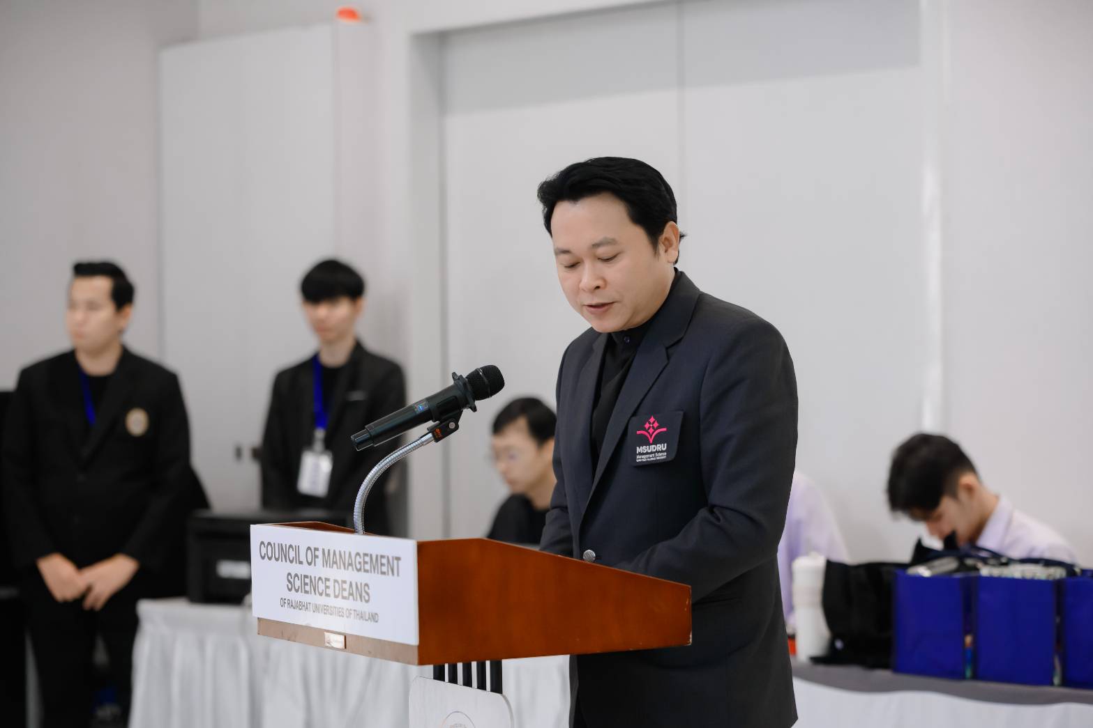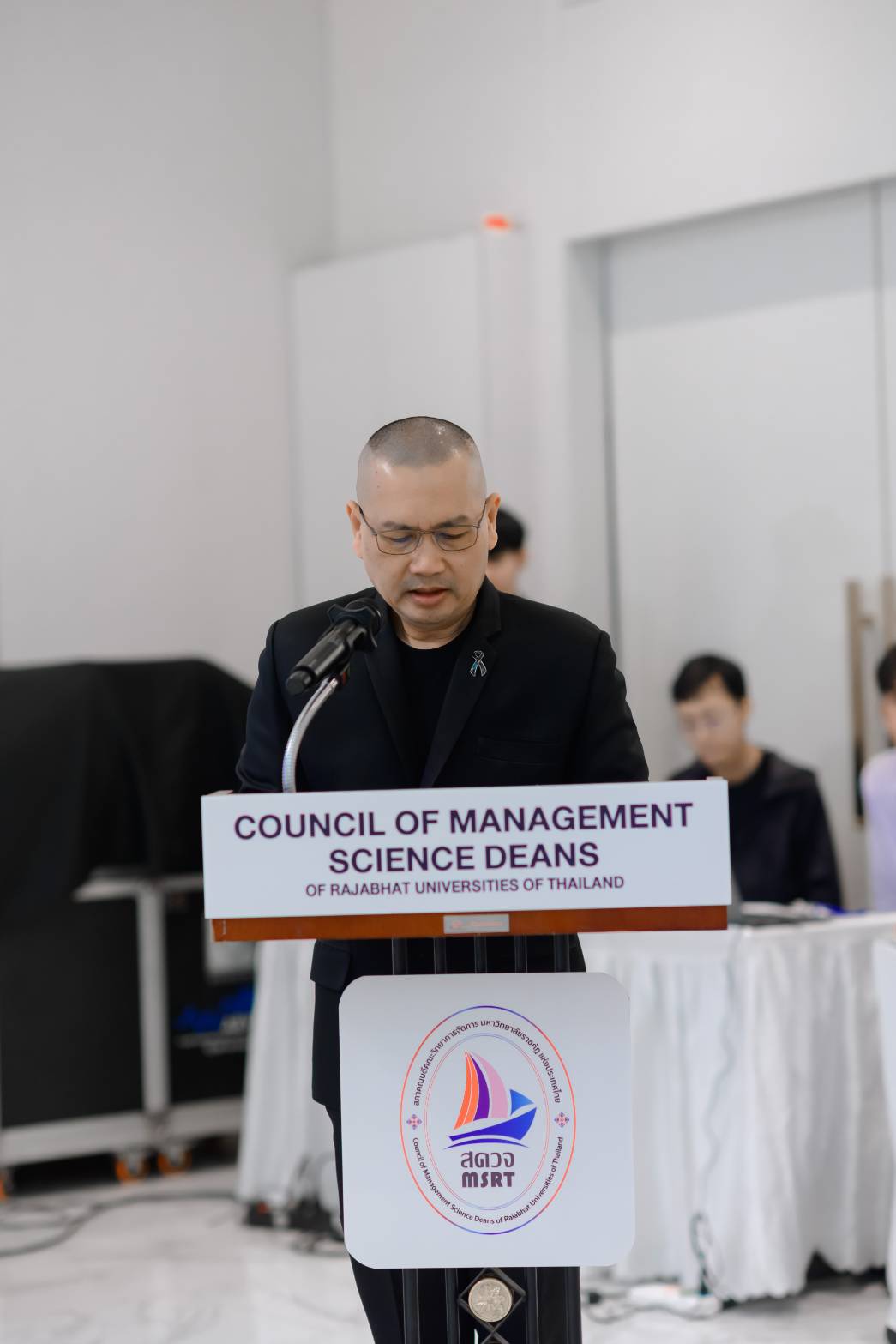 กิจกรรมในครั้งนี้จัดขึ้นเพื่อเสริมสร้างเครือข่ายความร่วมมือทางวิชาการและการบริหาร พร้อมทั้งเป็นการสร้างเวทีแลกเปลี่ยนเรียนรู้ประสบการณ์ ระหว่างสภาคณบดีคณะวิทยาการจัดการ มหาวิทยาลัยราชภัฏแห่งประเทศไทน และส่งเสริมภาวะผู้นำ เพื่อสนับสนุนการขับเคลื่อนองค์กรตามหลักธรรมาภิบาล ยกระดับคุณภาพการบริหารจัดการในอนาคต ซี่งได้รับเกียรติจาก ผศ.ดร.จารึก สิงหปรีชา ผู้อำนวยการศูนย์ศึกษาความเป็นไปได้และประเมินผลกระทบของโครงการด้านเศรษฐกิจและสังคม บรรยายพิเศษในหัวข้อ “การพัฒนาศักยภาพผู้นำด้านการบริหารความเสี่ยง” โดยได้รับความสนใจจากคณะผู้บริหาร คณาจารย์คณะวิทยาการจัดการจากมหาวิทยาลัยราชภัฏทั่วประเทศอย่างมาก พร้อมกันนี้ได้มีการประชุมวิสามัญ ประจำปี 2568 ครั้งที่ 2 สมาคมสภาคณบดีคณะวิทยาการจัดการ มหาวิทยาลัยราชภัฏแห่งประเทศไทย โดยมี ผศ.ดร.พนา ดุลยพัชร์ นายกสมาคมสภาคณบดี คณะวิทยาการจัดการ มหาวิทยาลัยราชภัฏแห่งประเทศไทย เป็นประธานการประชุมในครั้งนี้
