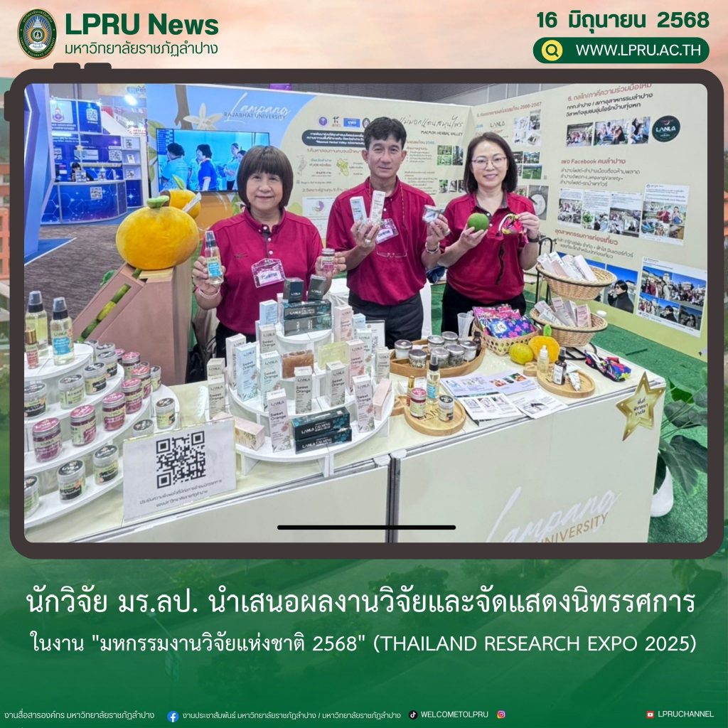 นักวิจัย มร.ลป. นำเสนอผลงานวิจัยและจัดแสดงนิทรรศการ ในงาน “มหกรรมงานวิจัยแห่งชาติ 2568” (Thailand Research Expo 2025)