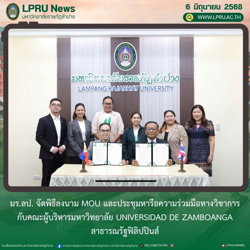 มร.ลป. จัดพิธีลงนาม MOU และประชุมหารือความร่วมมือทางวิชาการกับคณะผู้บริหารมหาวิทยาลัย Universidad de Zamboanga สาธารณรัฐฟิลิปปินส์