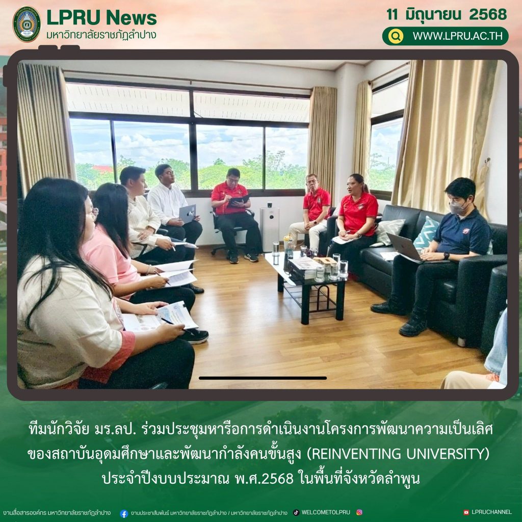ทีมนักวิจัย มร.ลป. ร่วมประชุมหารือการดำเนินงานโครงการพัฒนาความเป็นเลิศของสถาบันอุดมศึกษาและพัฒนากำลังคนขั้นสูง (Reinventing University) ประจำปีงบบประมาณ พ.ศ.2568 ในพื้นที่จังหวัดลำพูน