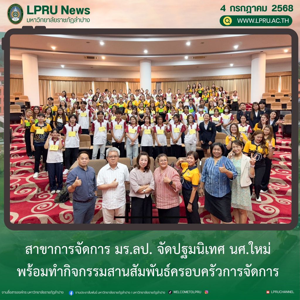 สาขาวิชาการจัดการ จัดปฐมนิเทศ นศ.ใหม่ พร้อมทำกิจกรรมสานสัมพันธ์ครอบครัวการจัดการ Leave a Comment / ข่าวเดือนกรกฎาคม 68 / เคลือนรงค์ หน่อคำ LPRU News : เมื่อวัน […] สาขาวิชาการจัดการ จัดปฐมนิเทศ นศ.ใหม่ พร้อมทำกิจกรรมสานสัมพันธ์ครอบครัวการจัดการ Read More »