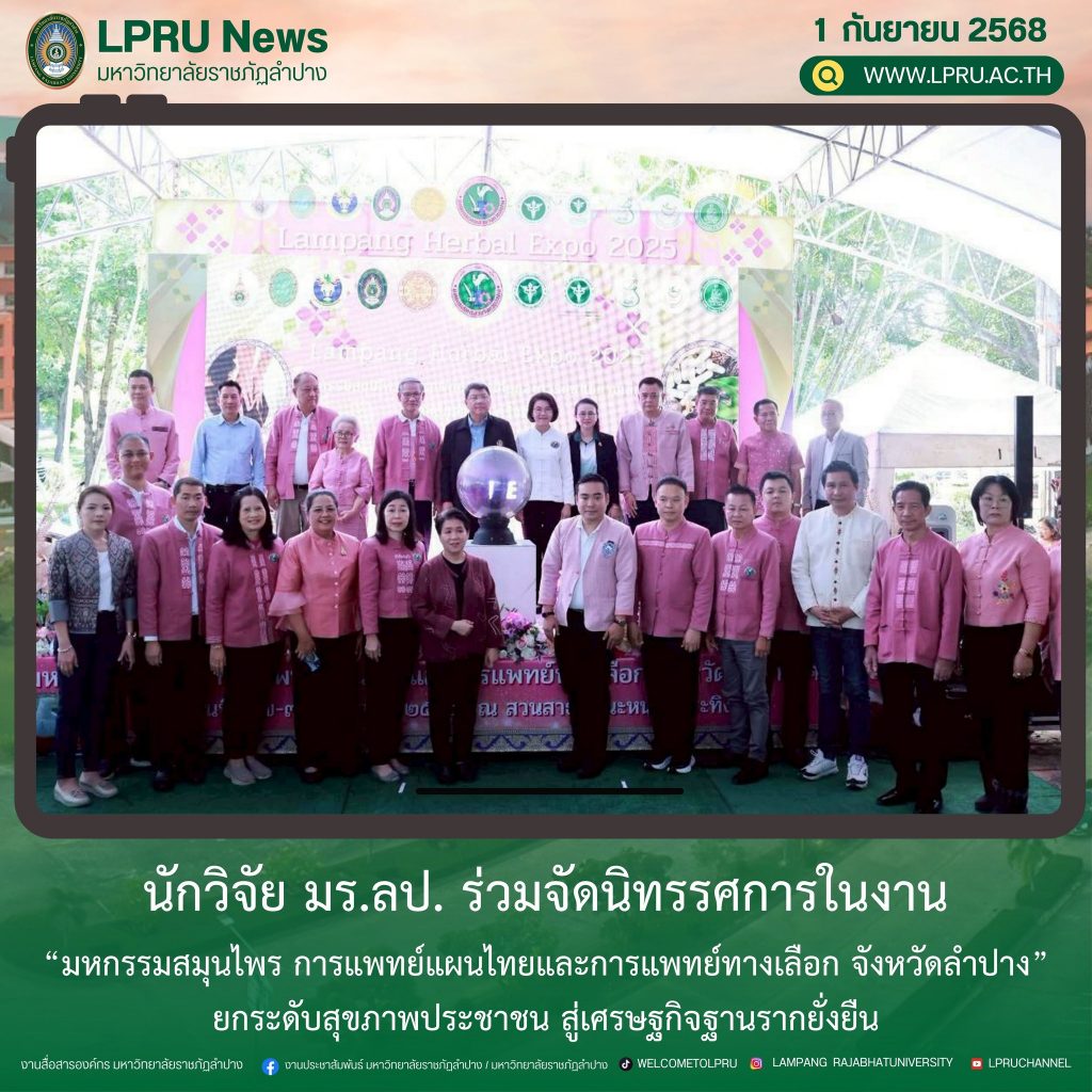 นักวิจัย มร.ลป. ร่วมจัดนิทรรศการในงาน “มหกรรมสมุนไพร การแพทย์แผนไทยและการแพทย์ทางเลือก จังหวัดลำปาง” ยกระดับสุขภาพประชาชน สู่เศรษฐกิจฐานรากยั่งยืน Leave a Comment / ข่าว2568, ข่าวเดือนสิงหาคม 68 / เคลือนรงค์ หน่อคำ LPRU News : รศ.ดร.บั นักวิจัย มร.ลป. ร่วมจัดนิทรรศการในงาน “มหกรรมสมุนไพร การแพทย์แผนไทยและการแพทย์ทางเลือก จังหวัดลำปาง” ยกระดับสุขภาพประชาชน สู่เศรษฐกิจฐานรากยั่งยืน Read More »