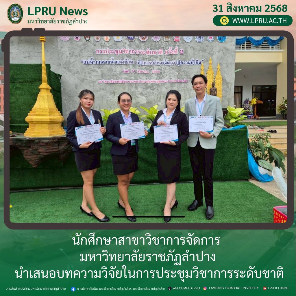นักศึกษาสาขาวิชาการจัดการ มหาวิทยาลัยราชภัฏลำปาง นำเสนอบทความวิจัยในการประชุมวิชาการระดับชาติ Leave a Comment / ข่าว2568, ข่าวเดือนสิงหาคม 68 / เคลือนรงค์ หน่อคำ LPRU NEWs : ผศ.ดร.อัจฉรา เม […] นักศึกษาสาขาวิชาการจัดการ มหาวิทยาลัยราชภัฏลำปาง นำเสนอบทความวิจัยในการประชุมวิชาการระดับชาติ Read More »
