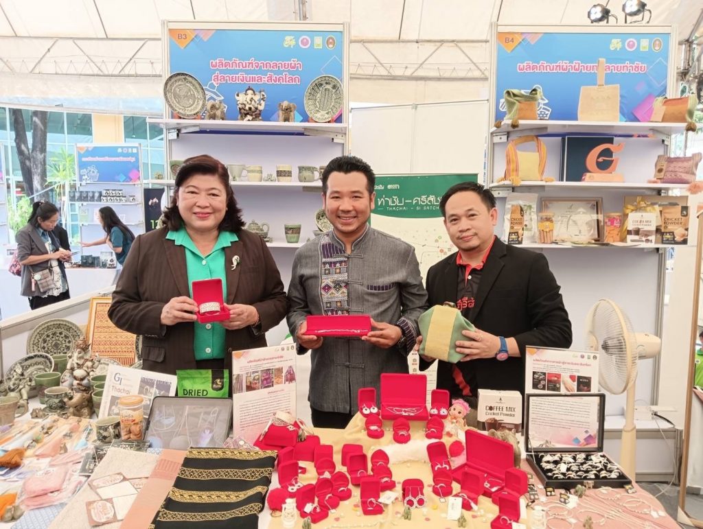 โดยผลิตภัณฑ์ที่ได้รับการคัดเลือกเป็นผลิตภัณฑ์ภายใต้แนวคิด “จากลายผ้าสู่ลายเงินและสังคโลก” ซึ่งมีผลิตภัณฑ์แหวนเงิน กำไรเงิน และเครื่องสังคโลกลวดลาย จักรวาล 9 ลาย ทั้งนี้เป็นลายผ้าท่าชัย อำเภอศรีสัชนาลัย จังหวัดสุโขทัย ที่ชุมชนร่วมกันคิดค้นและสร้างสรรค์เป็นลายผ้าและประยุกต์สู่ลวดลายบนเครื่องเงินและสังคมโลก ได้รับเกียรติจาก ดร.วิภารัตน์ ดีอ่อง ผู้อำนวยการสำนักงานการวิจัยแห่งชาติ (วช.) ให้เกียรติเยี่ยมชมผลิตภัณฑ์ที่นักวิจัยนำมาจัดแสดงและบันทึกภาพเป็นที่ระลึก รวมทั้งยังได้รับความสนใจจากผู้บริหาร นักวิจัย และผู้เข้าร่วมงานเป็นจำนวนมาก